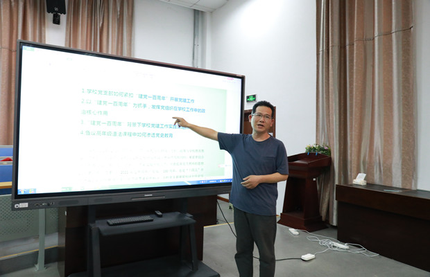 首先,张辉副书记对近阶段建党100周年活动进行了部署。张副书记指出:学校党支部是党的基础组织,肩负着把党的路线、方针、政策与学校教育教学工作相结合的重任。学校党支部在充分发挥战斗堡垒作用的同时,要紧密结合新形势有计划、有目的、分层次、多渠道地开展工作,全面提高党员教师的思想政治素质和业务素质。2021年是中国共产党成立100周年,也是“十四五”开局之年,必将在中国历史上留下浓墨重彩的标注。学校党支部要紧扣这个历史节点,创造性地开展好党建工作。