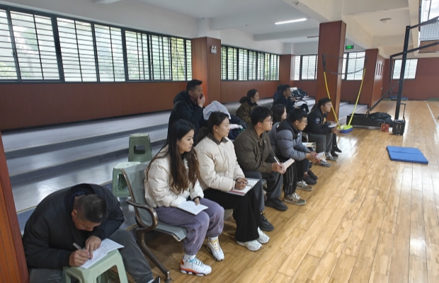 体育组教研活动:跪跳起与体操动作的结合